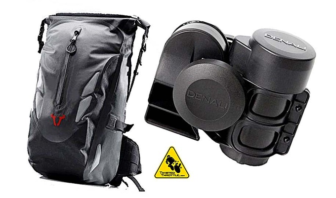 • SWMotech Baracuda Waterproof Backpack ($170)  and DENALI SoundBomb ($50) from Twisted Throttle ($200)